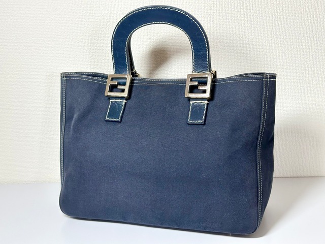 FENDI フェンディ デニム F金具 ハンドバッグ ネイビー
