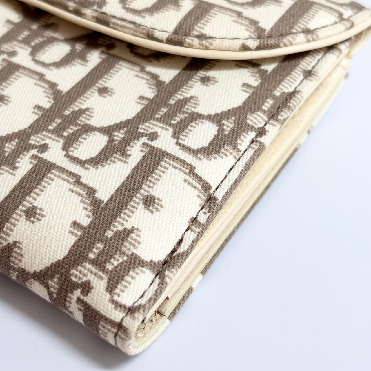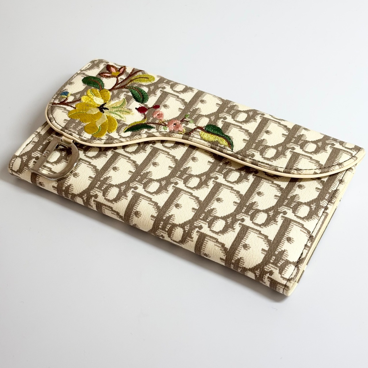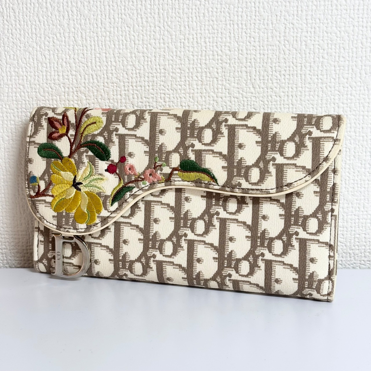 美品 DIOR ディオール サドル トロッター柄 花刺繍 二つ折り 長財布