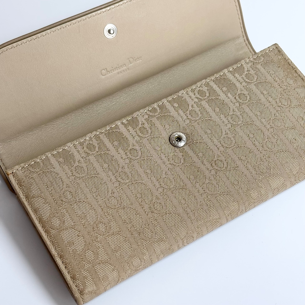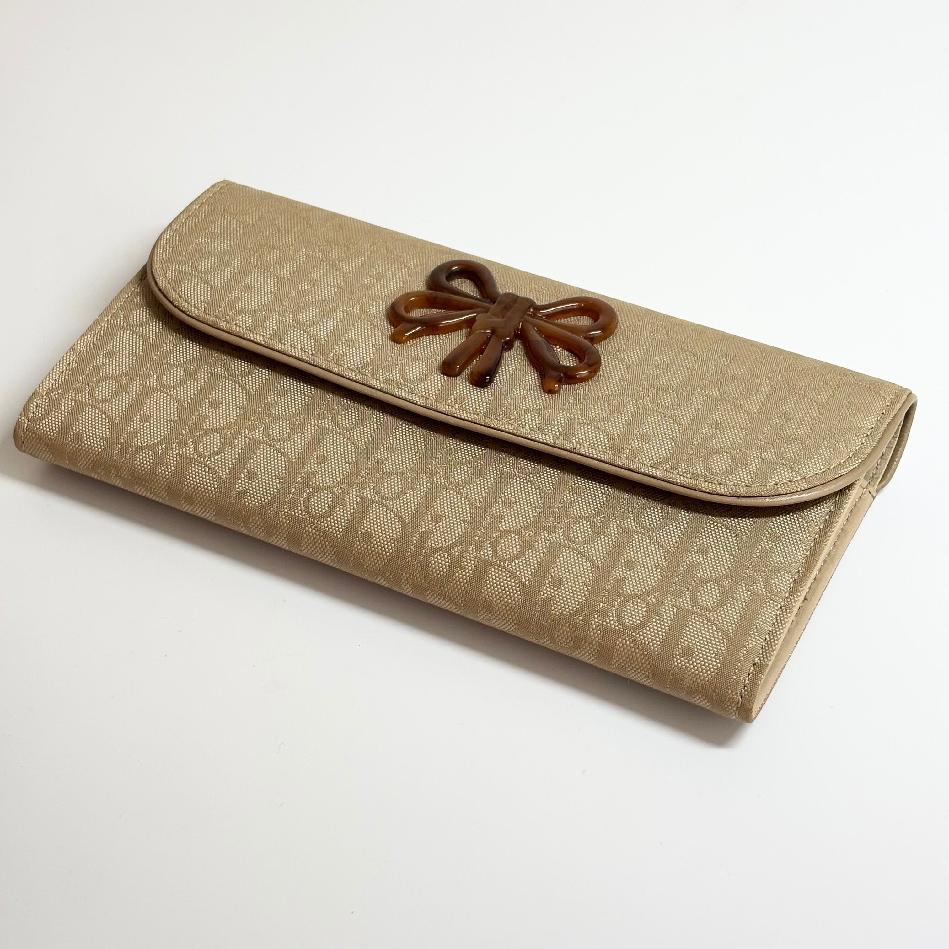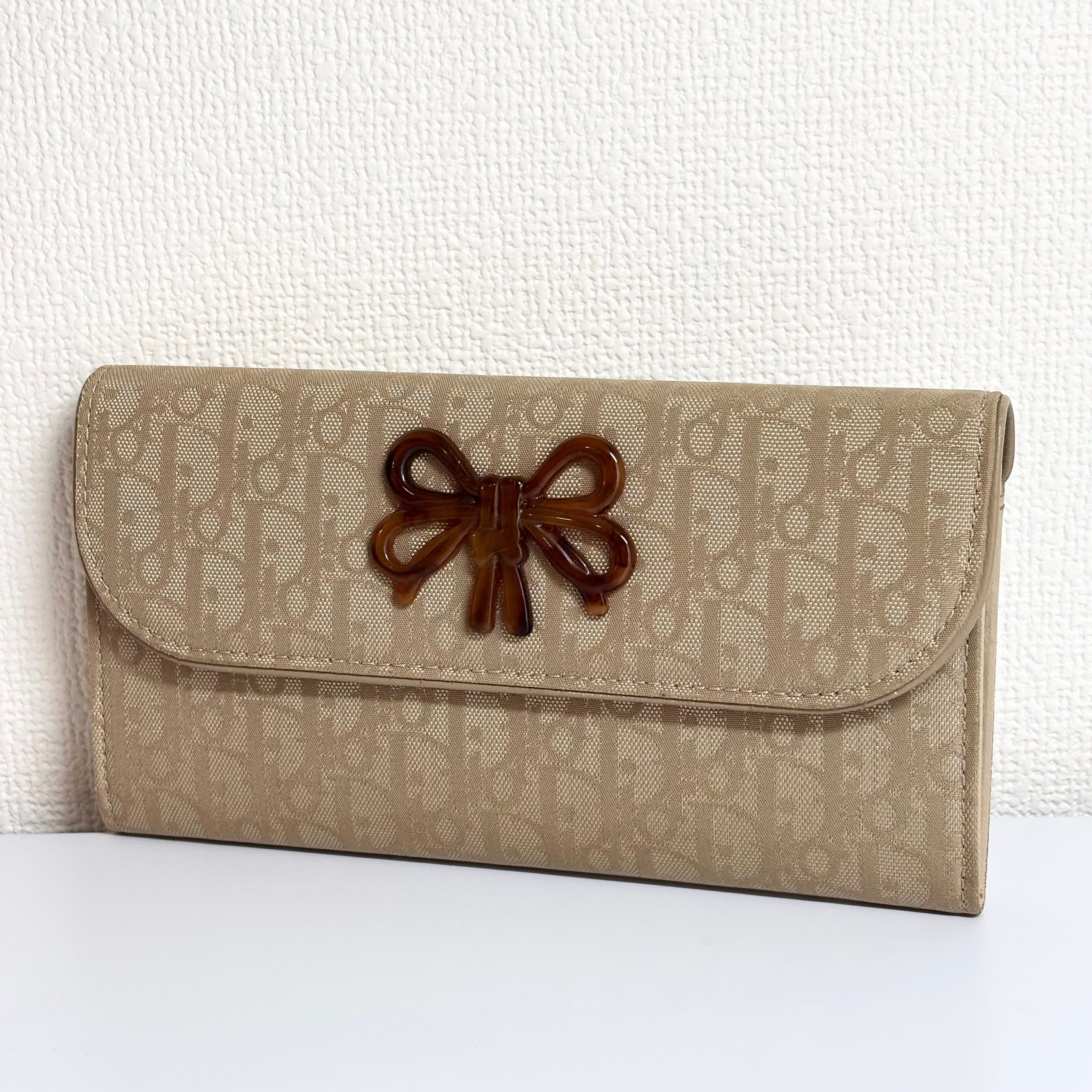 美品 DIOR ディオール トロッター柄 鼈甲リボン 二つ折り 長財布