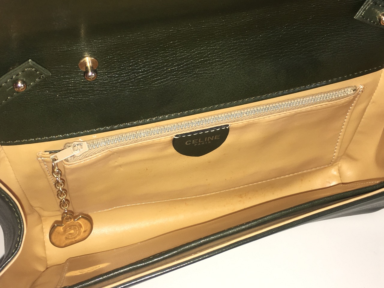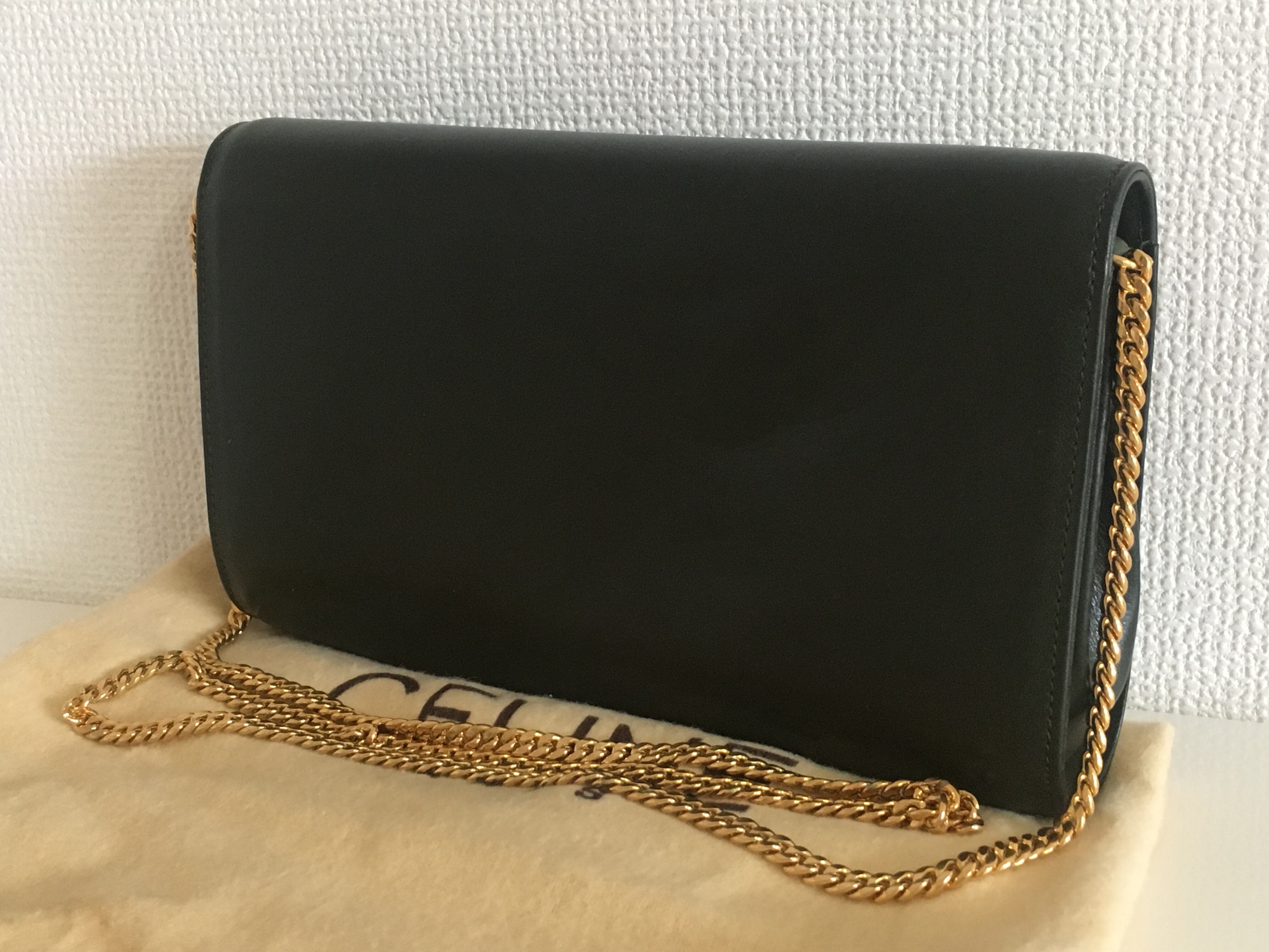 セリーヌ レザー 3WAY チェーン ショルダーバッグ ヴィンテージ 深緑