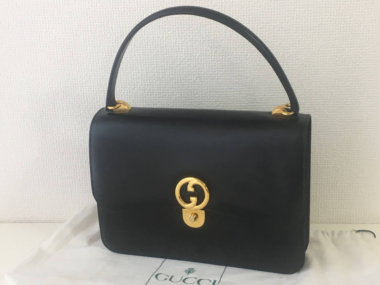 グッチ レザー ハンドバッグ ヴィンテージ ブラック