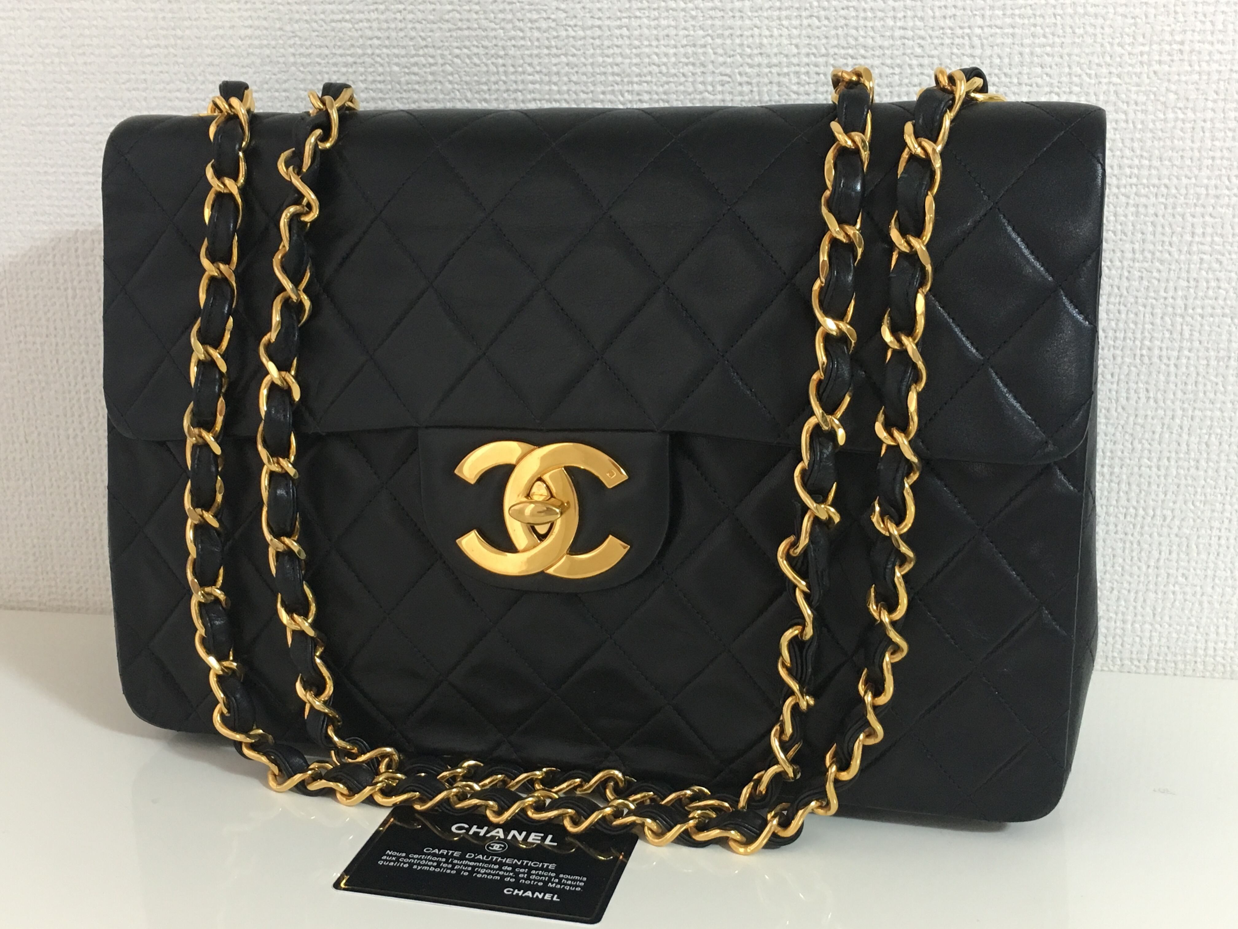 シャネル デカマトラッセ チェーン ショルダーバッグ ヴィンテージ 黒