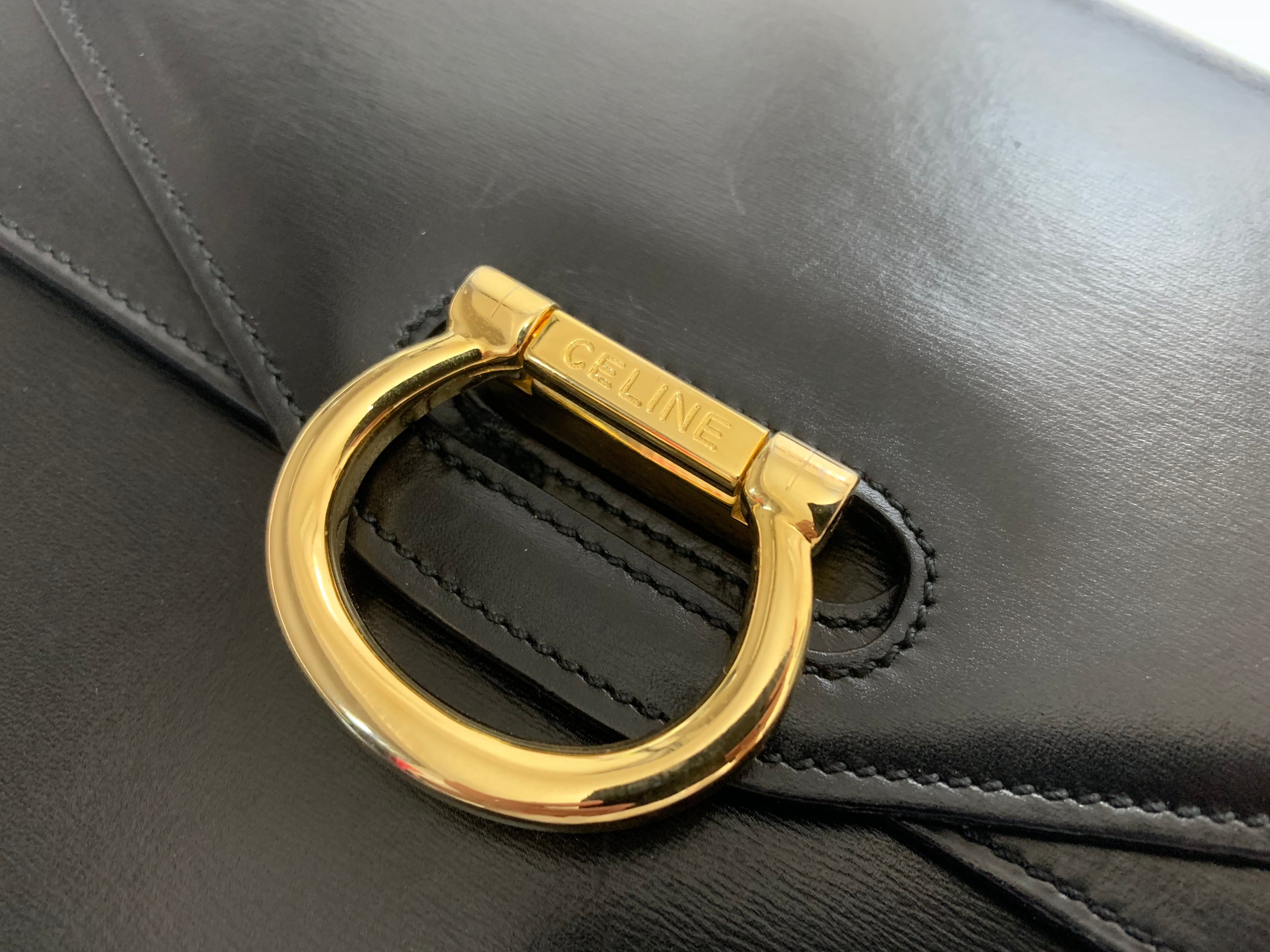 セリーヌ レザー Wフラップ ハンドバッグ ヴィンテージ 黒
