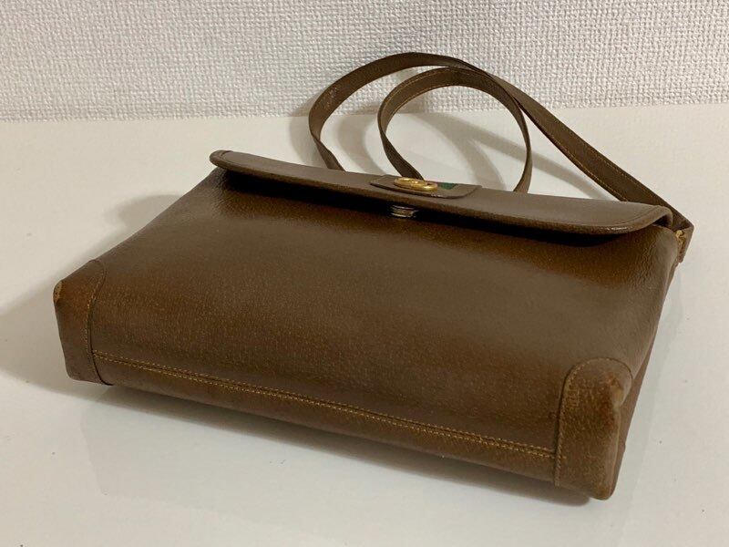 グッチ レザー シェリーライン ショルダーバッグ ヴィンテージ ブラウン