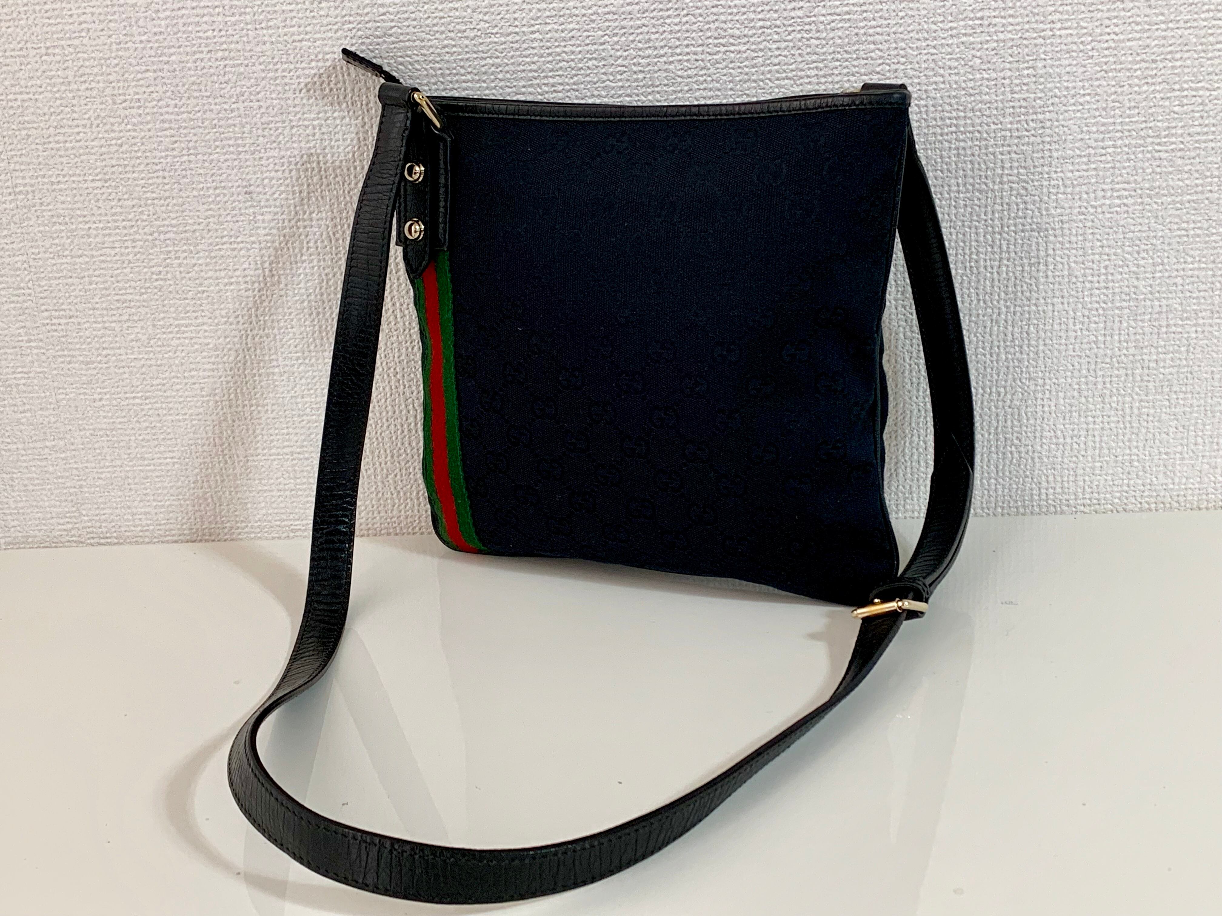 グッチ GGキャンバス シェリーライン チャーム付き ショルダーバッグ 黒
