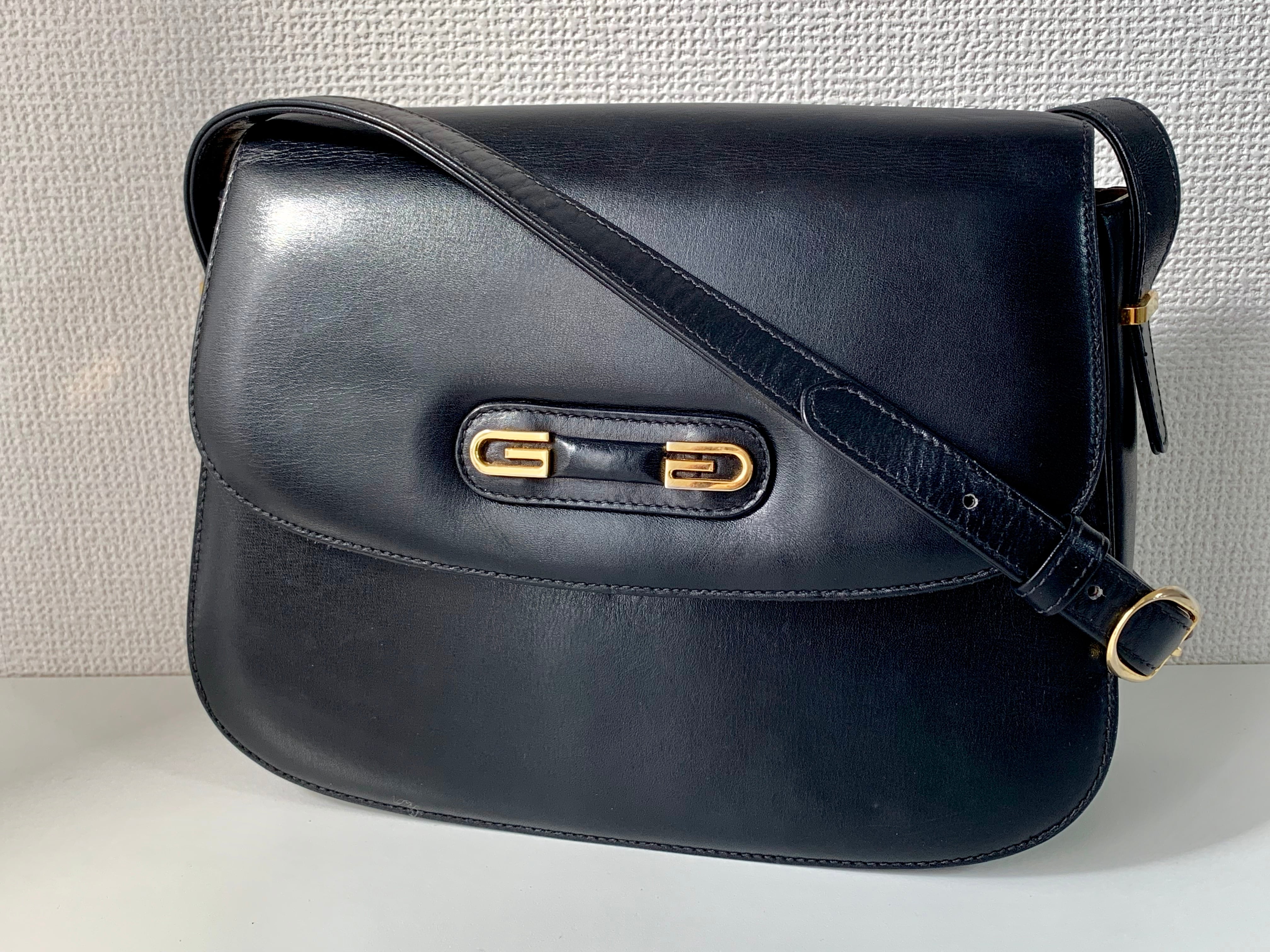 GUCCI グッチ レザー G金具 ショルダーバッグ ヴィンテージ ブラック