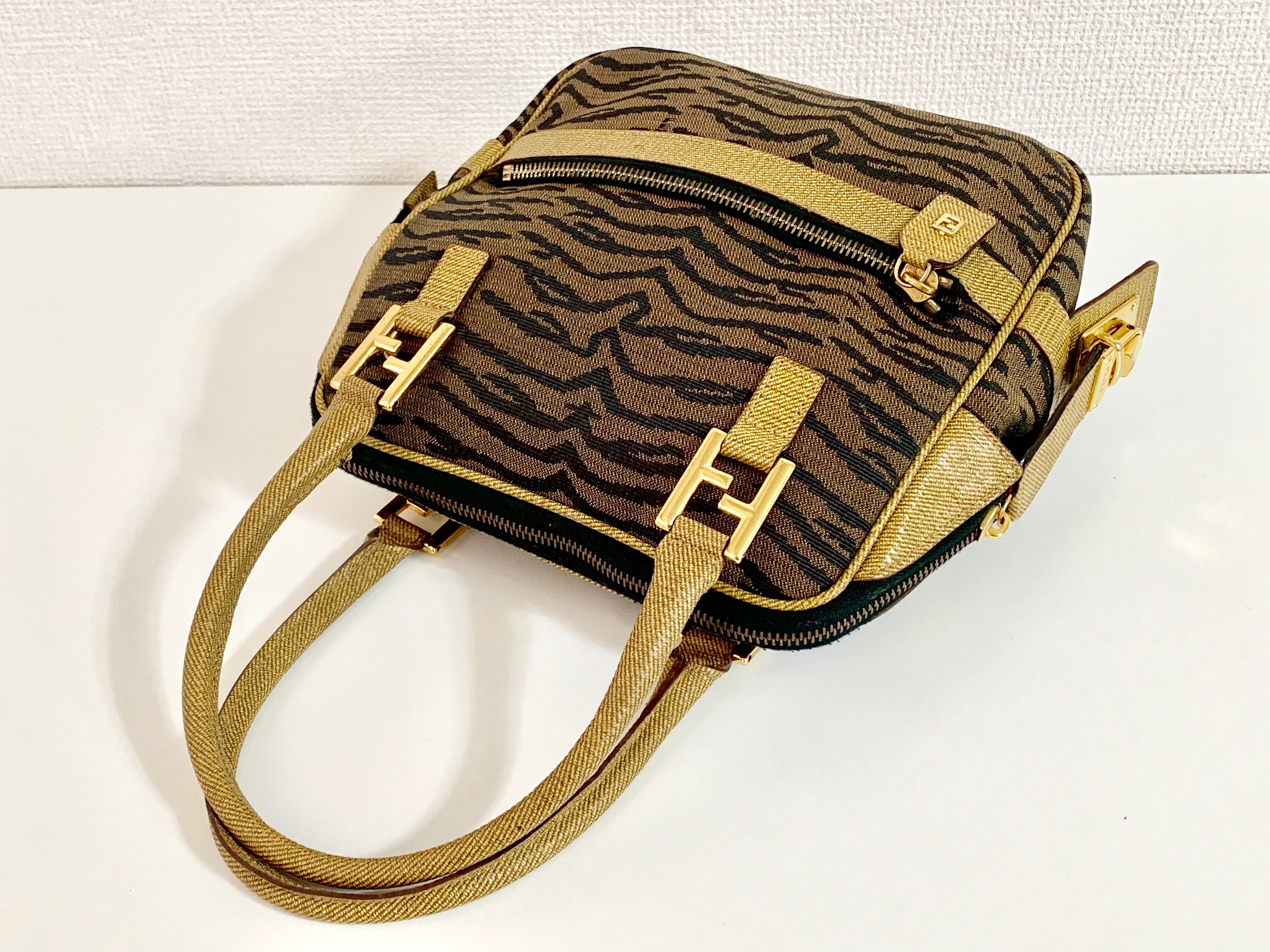 フェンディ ゼブラ柄 F金具 キャンバス レザー ハンドバッグ ヴィンテージ