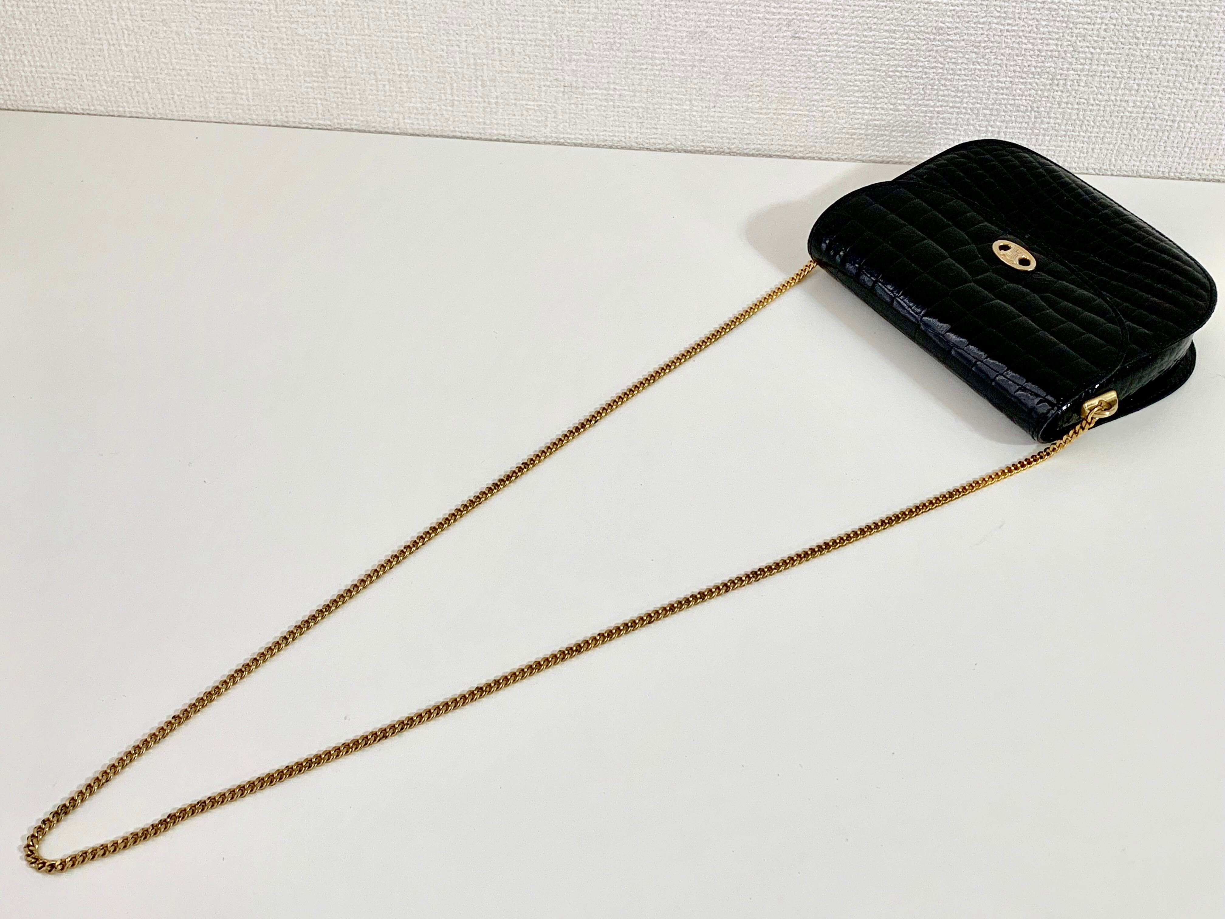 セリーヌ リアルクロコ ブラゾン金具 チェーン ショルダーバッグ ヴィンテージ