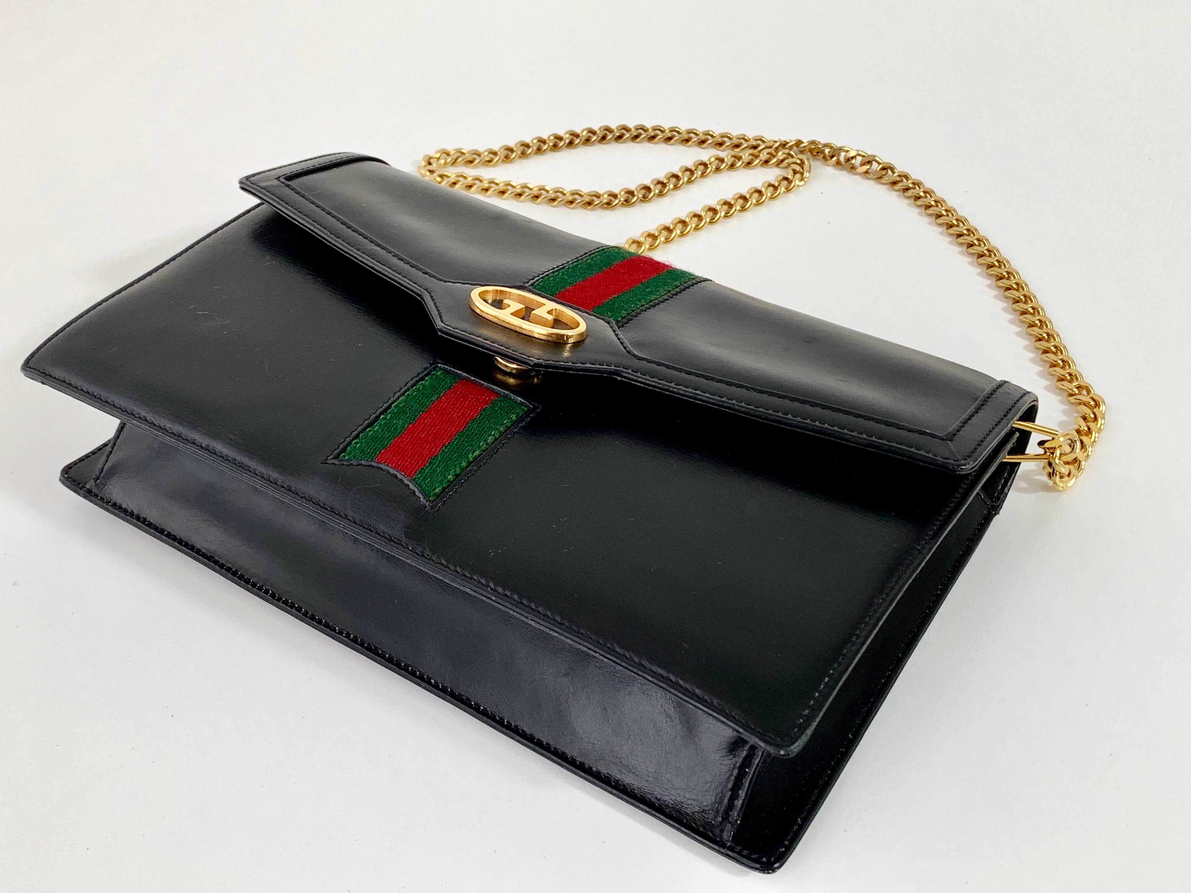 グッチ レザー GG金具 シェリー チェーン ショルダーバッグ ヴィンテージ 黒