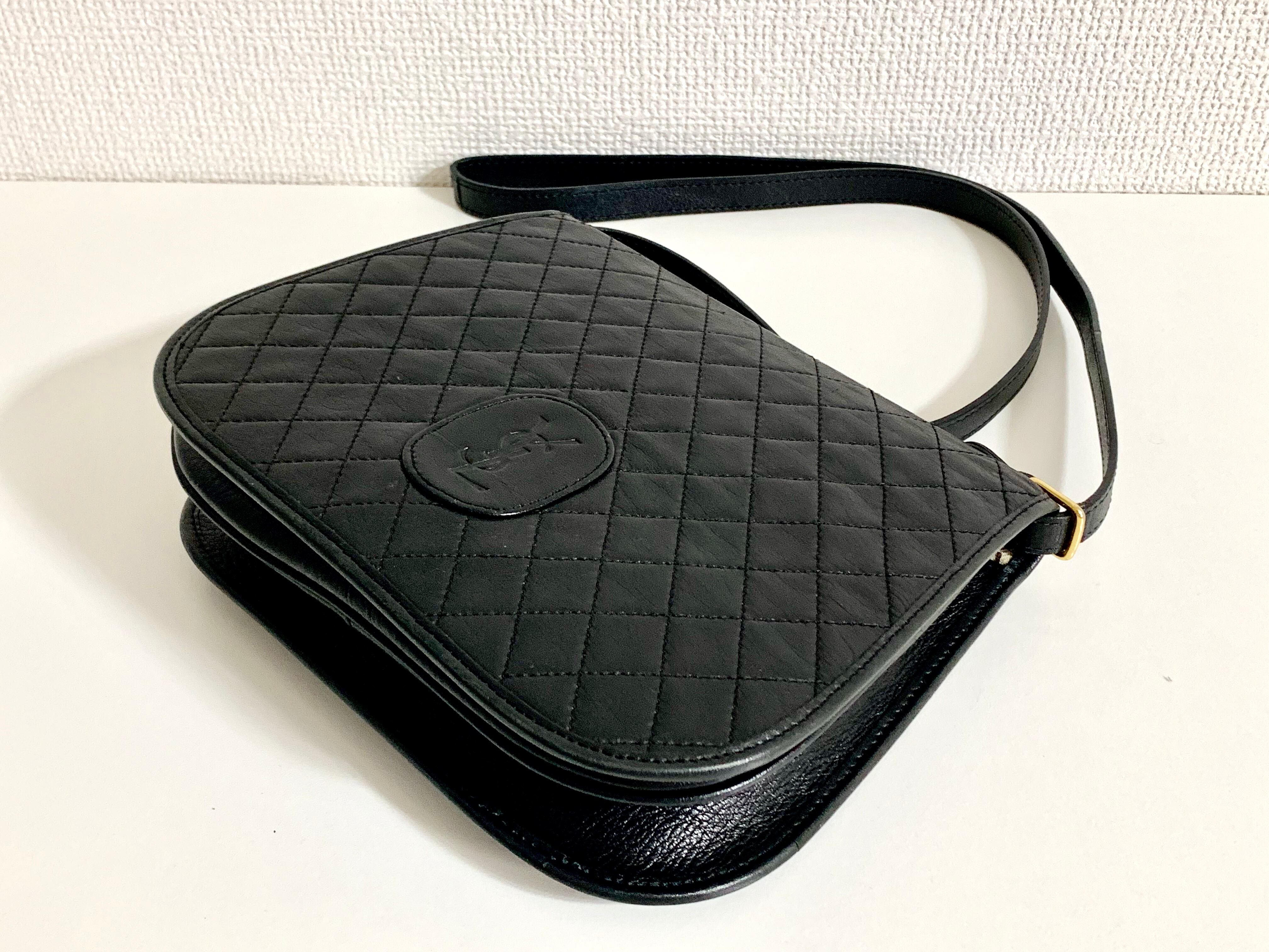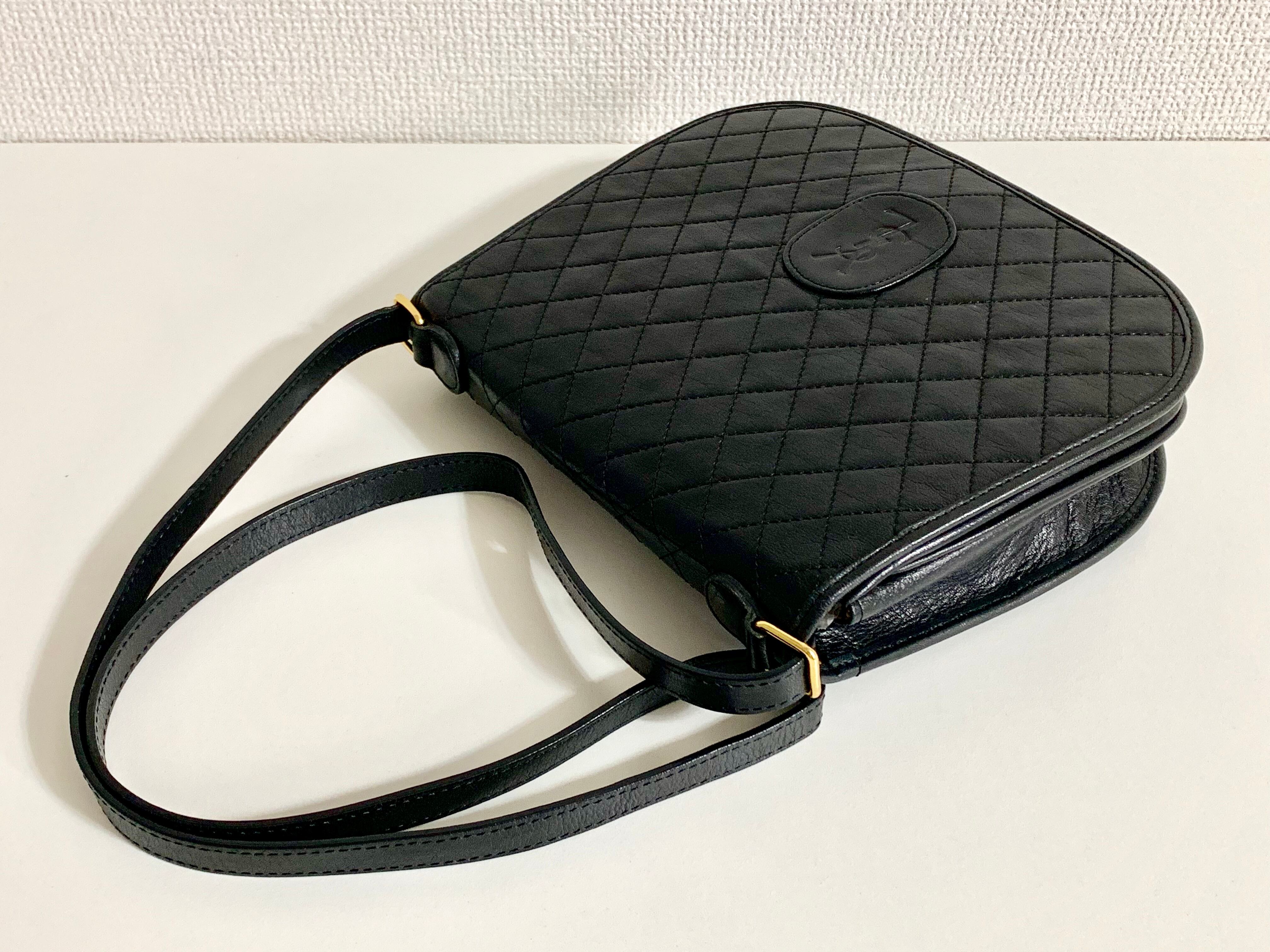YSL イヴサンローラン ステッチレザー ショルダーバッグ ヴィンテージ 黒