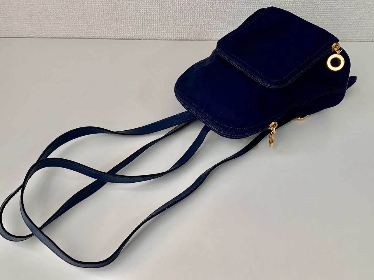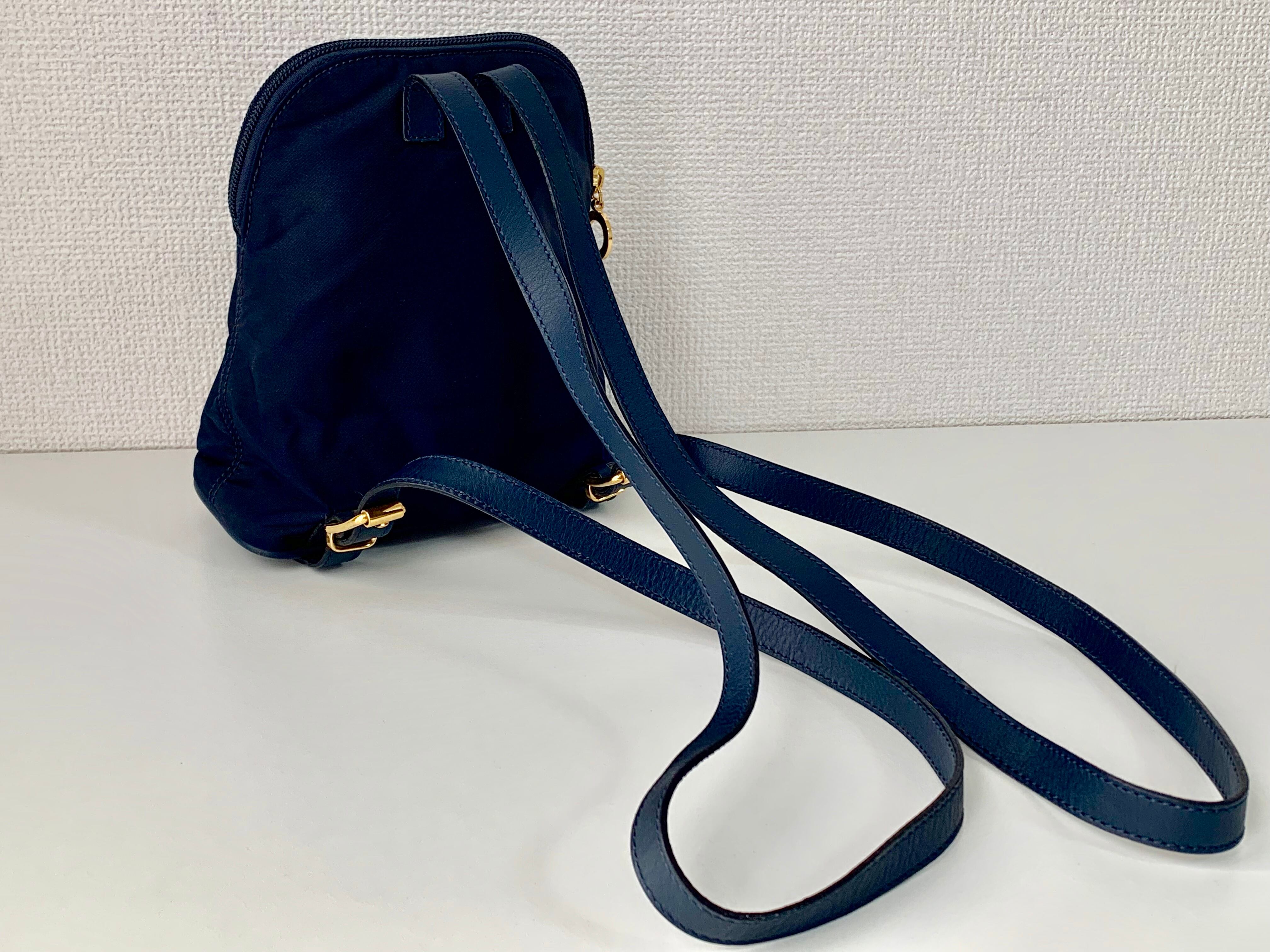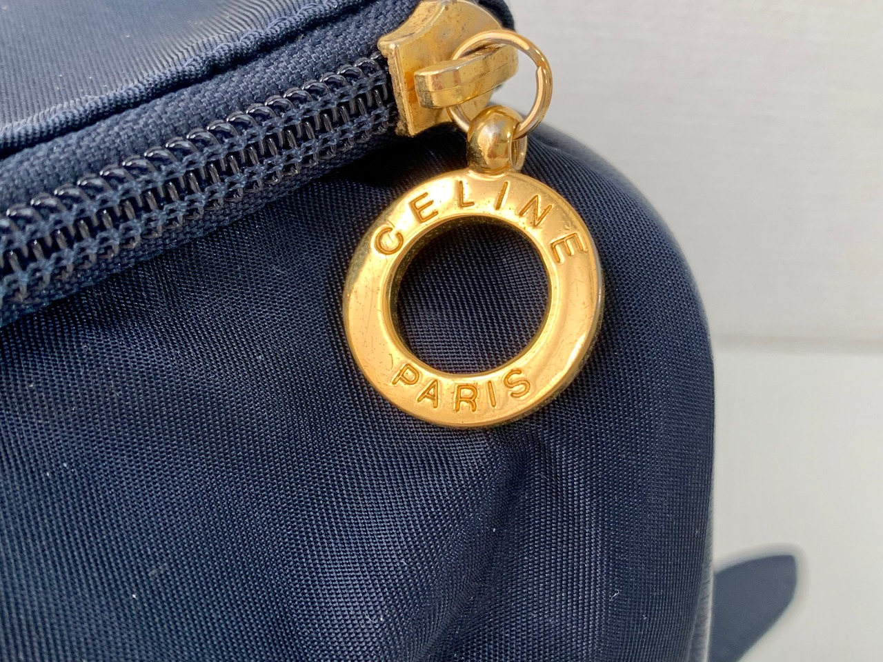 セリーヌ ナイロン レザー サークルロゴ ミニ リュック ヴィンテージ ネイビー