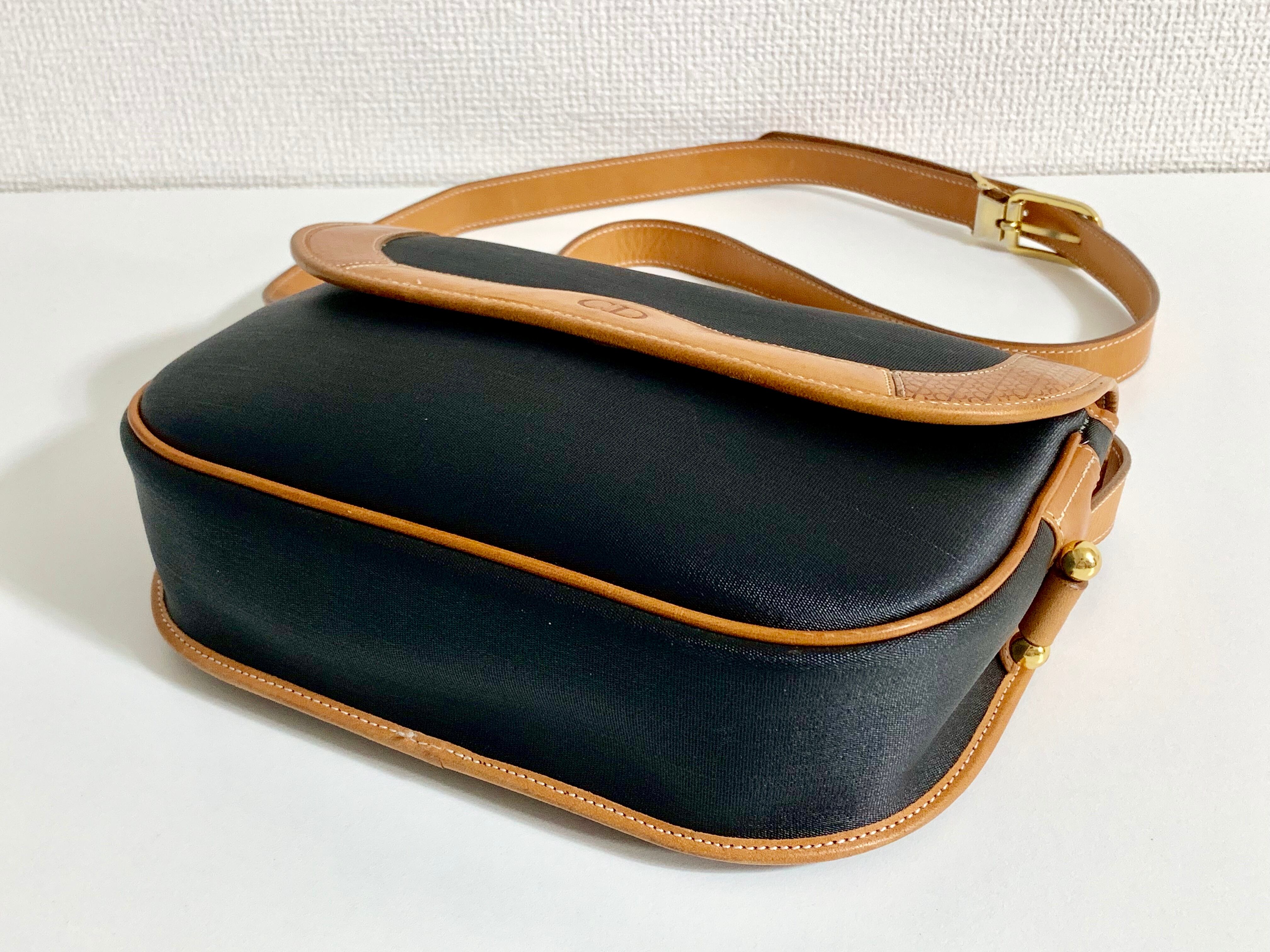 ディオール レザー PVC 斜め掛け ショルダーバッグ ヴィンテージ 黒 茶