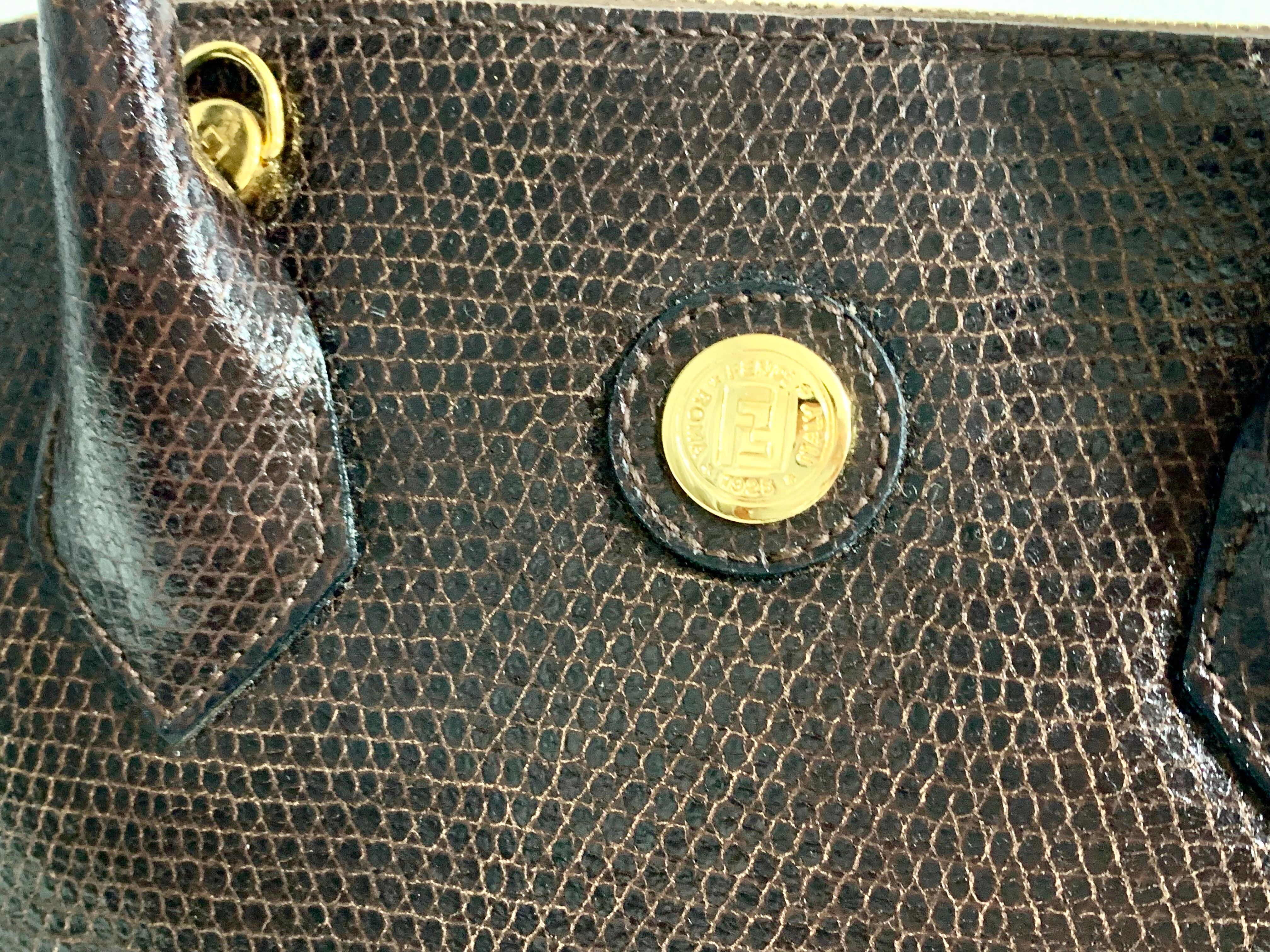 フェンディ 型押しレザー ハンドバッグ ヴィンテージ ブラウン