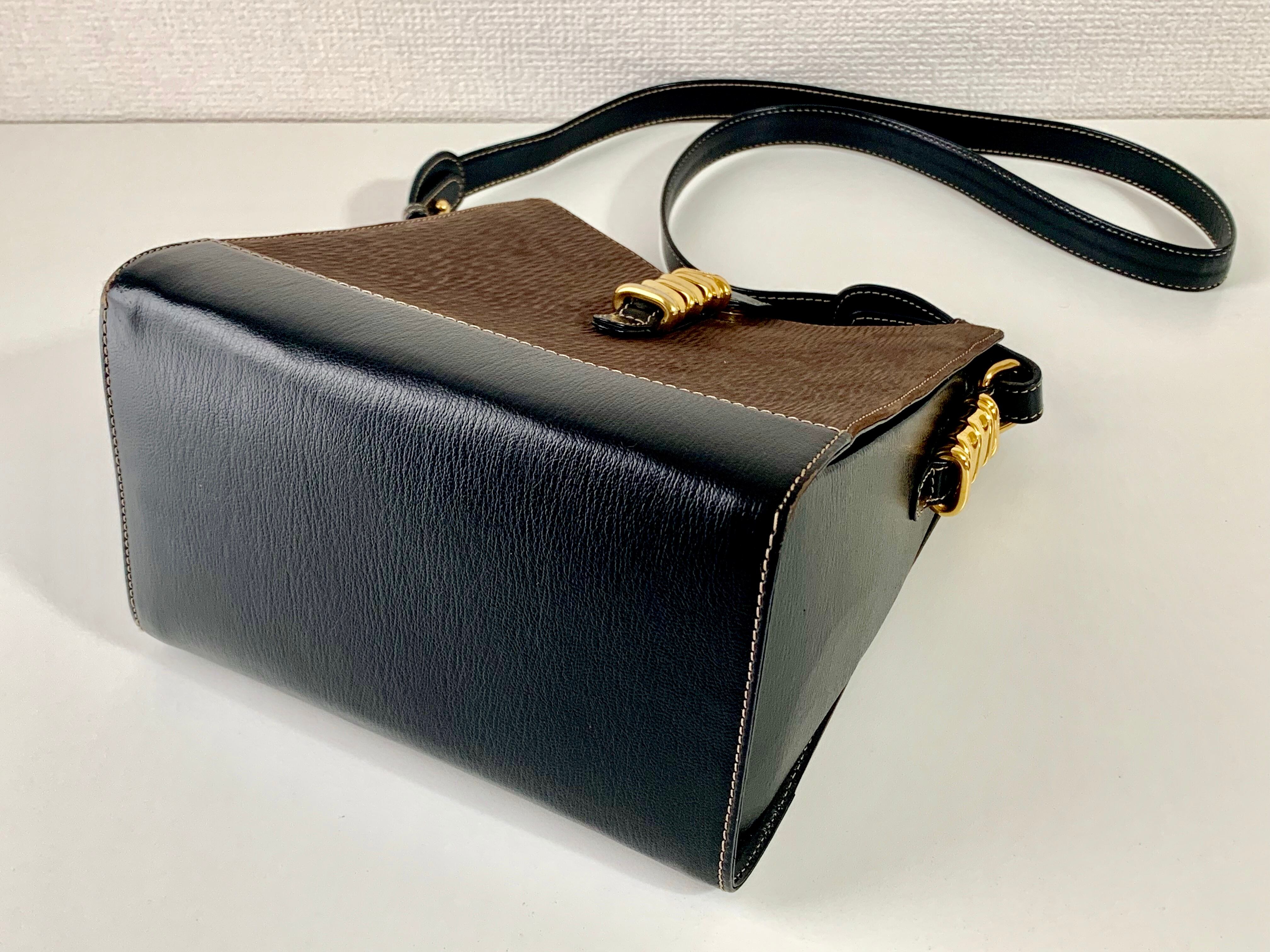 ロエベ レザー ツイスト ショルダーバッグ ヴィンテージ バイカラー 黒 茶