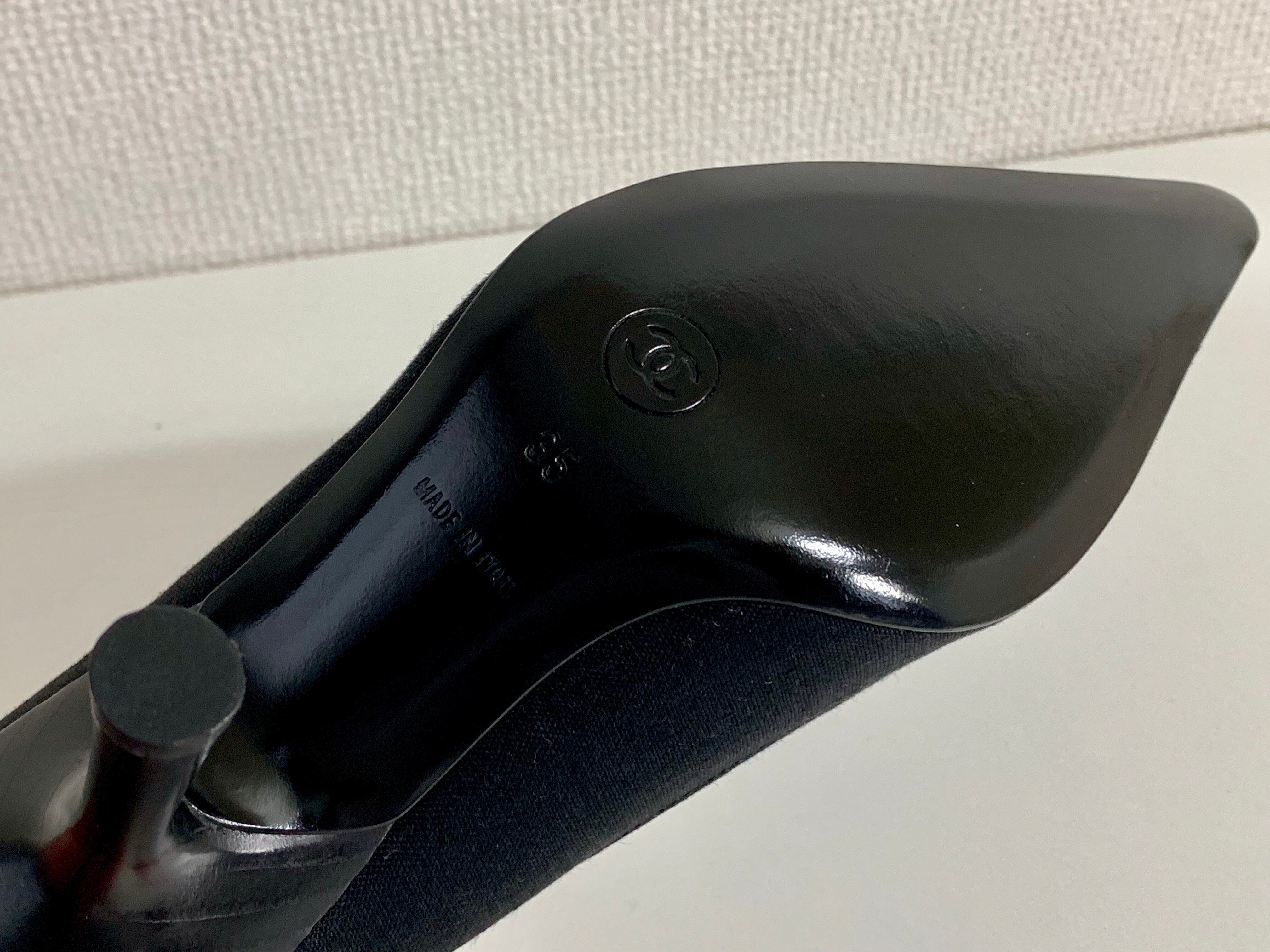 シャネル キャンバス ココマーク リボン パンプス ブラック