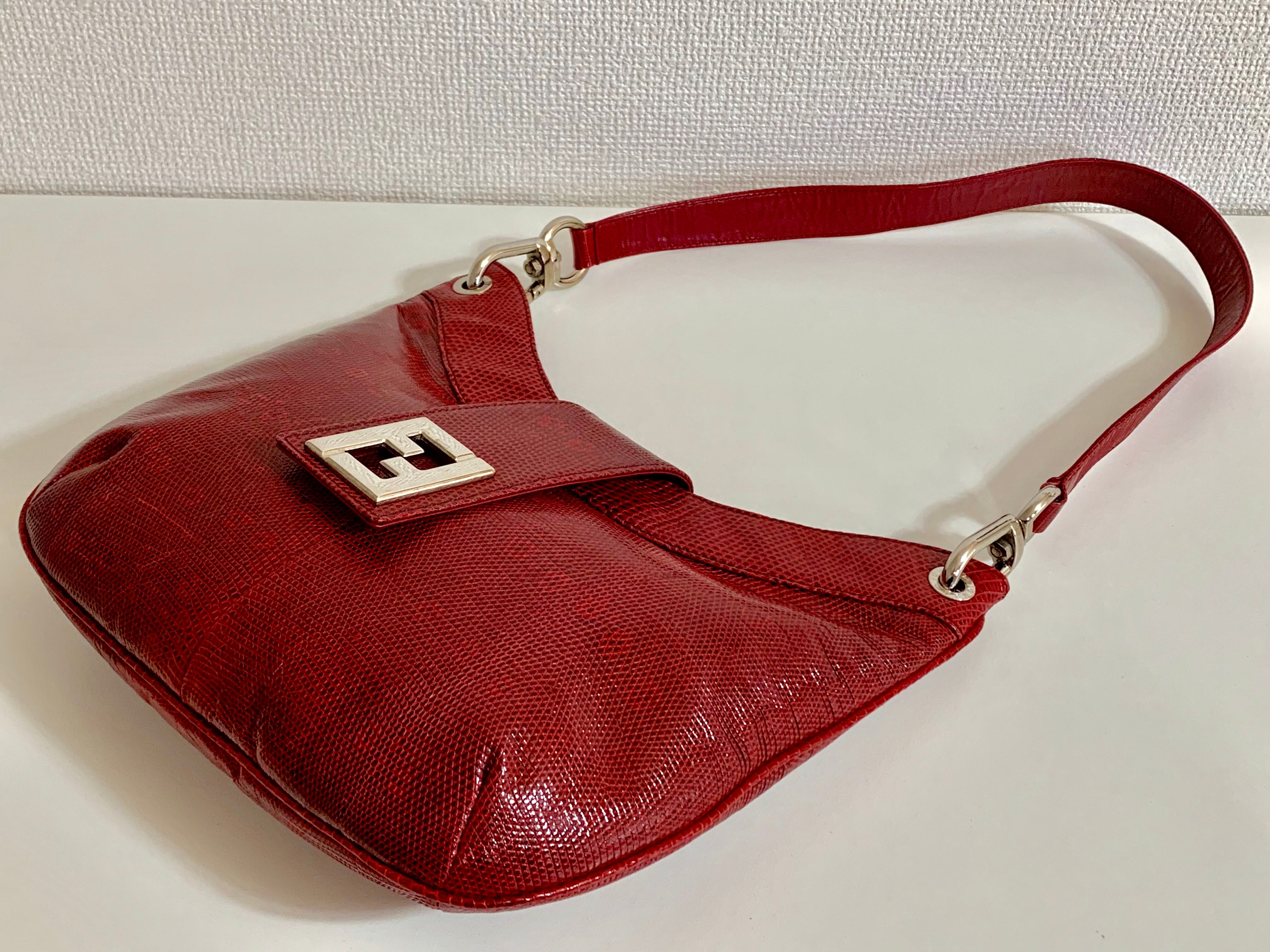 フェンディ F金具 リザード型押し レザー ショルダーバッグ ヴィンテージ