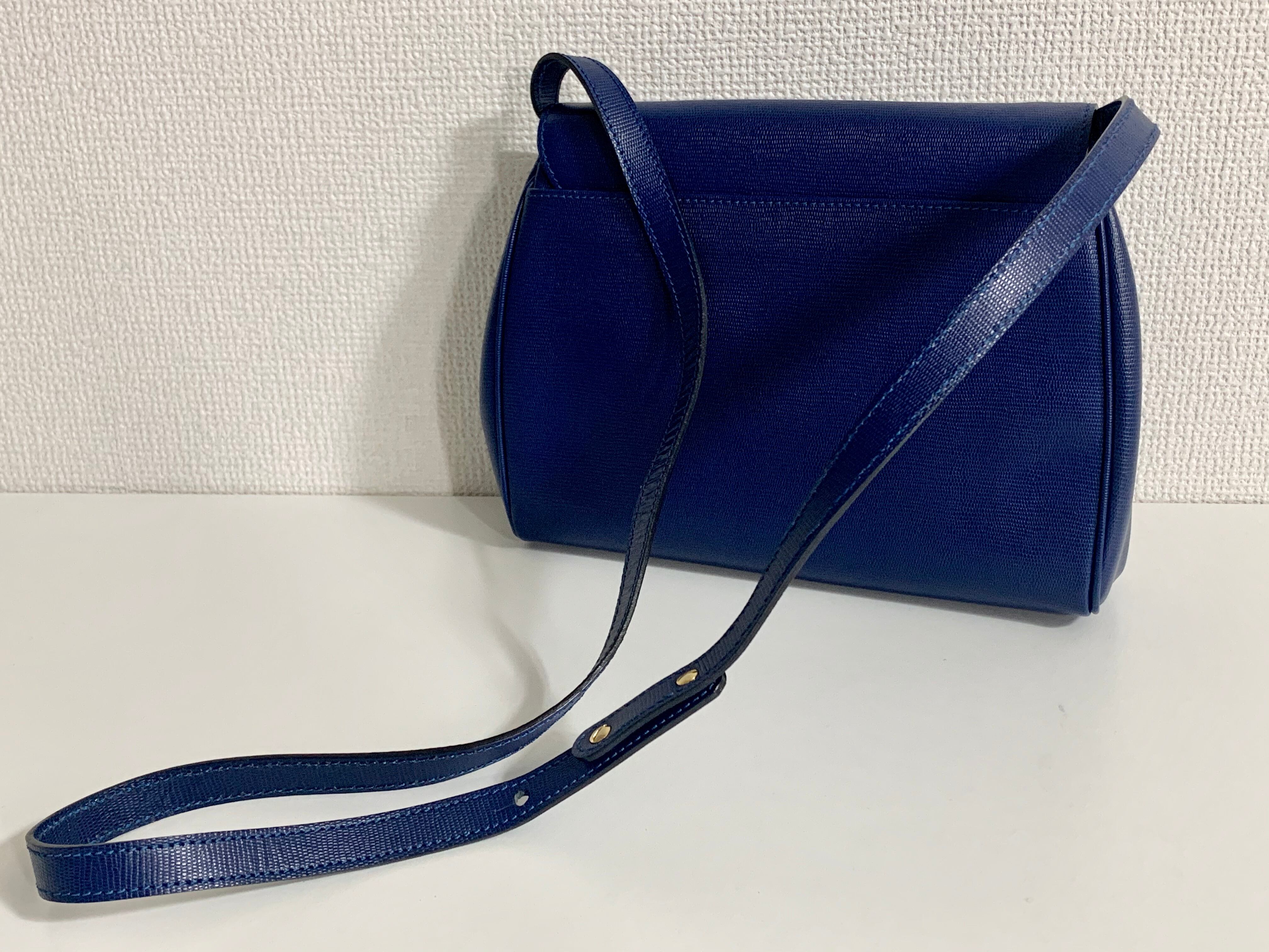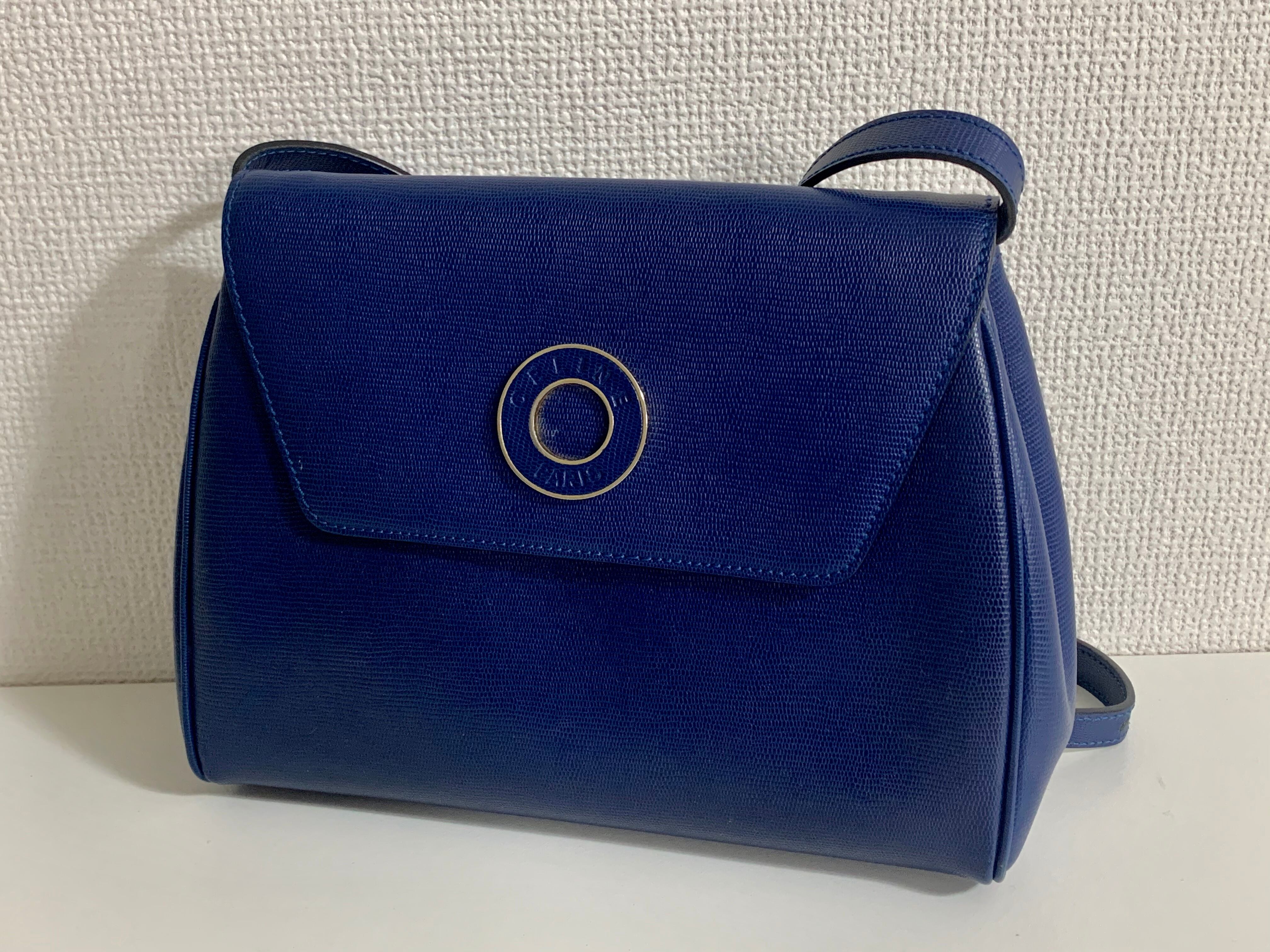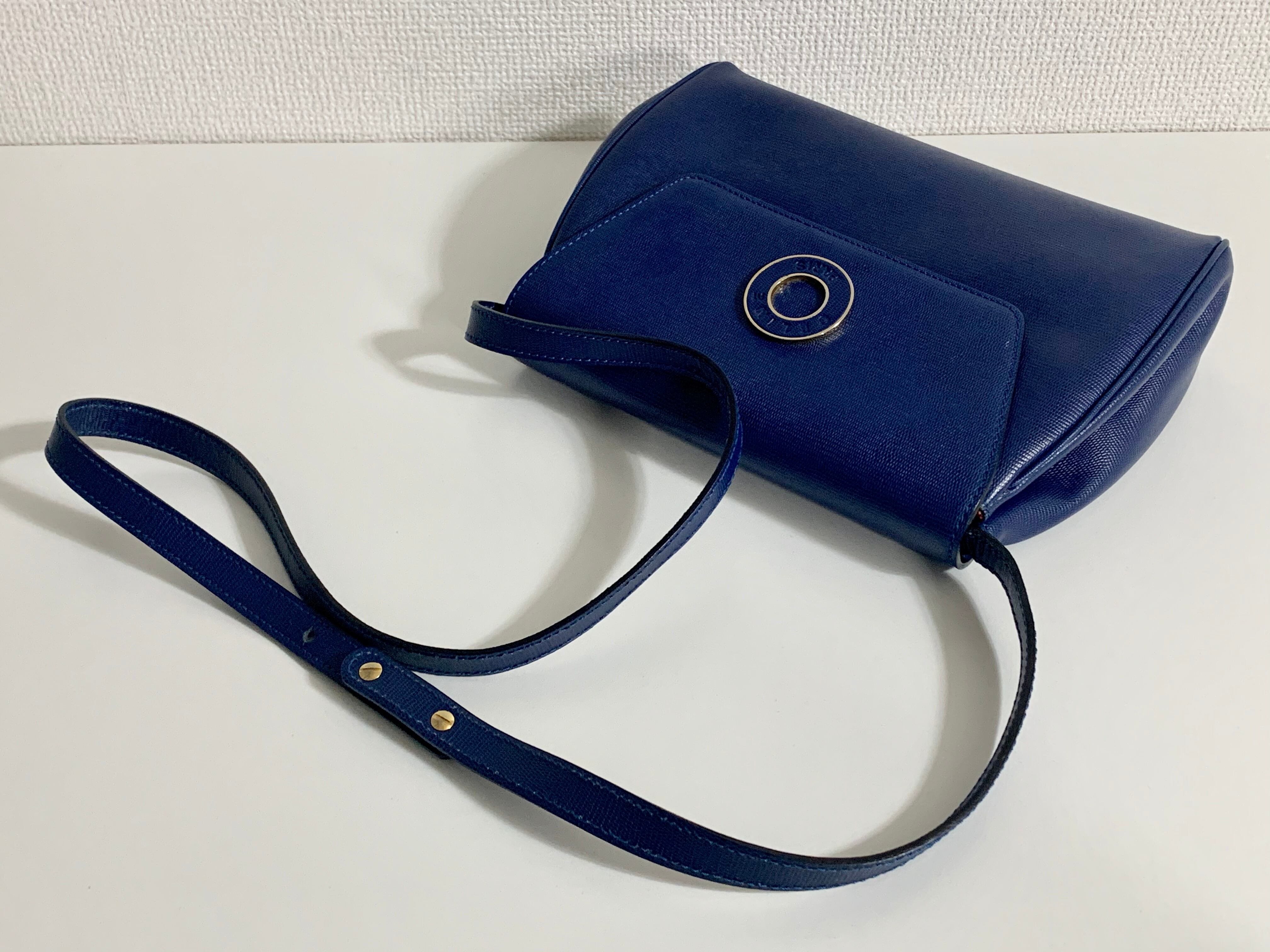 セリーヌ レザー サークルロゴ ショルダーバッグ ヴィンテージ 青