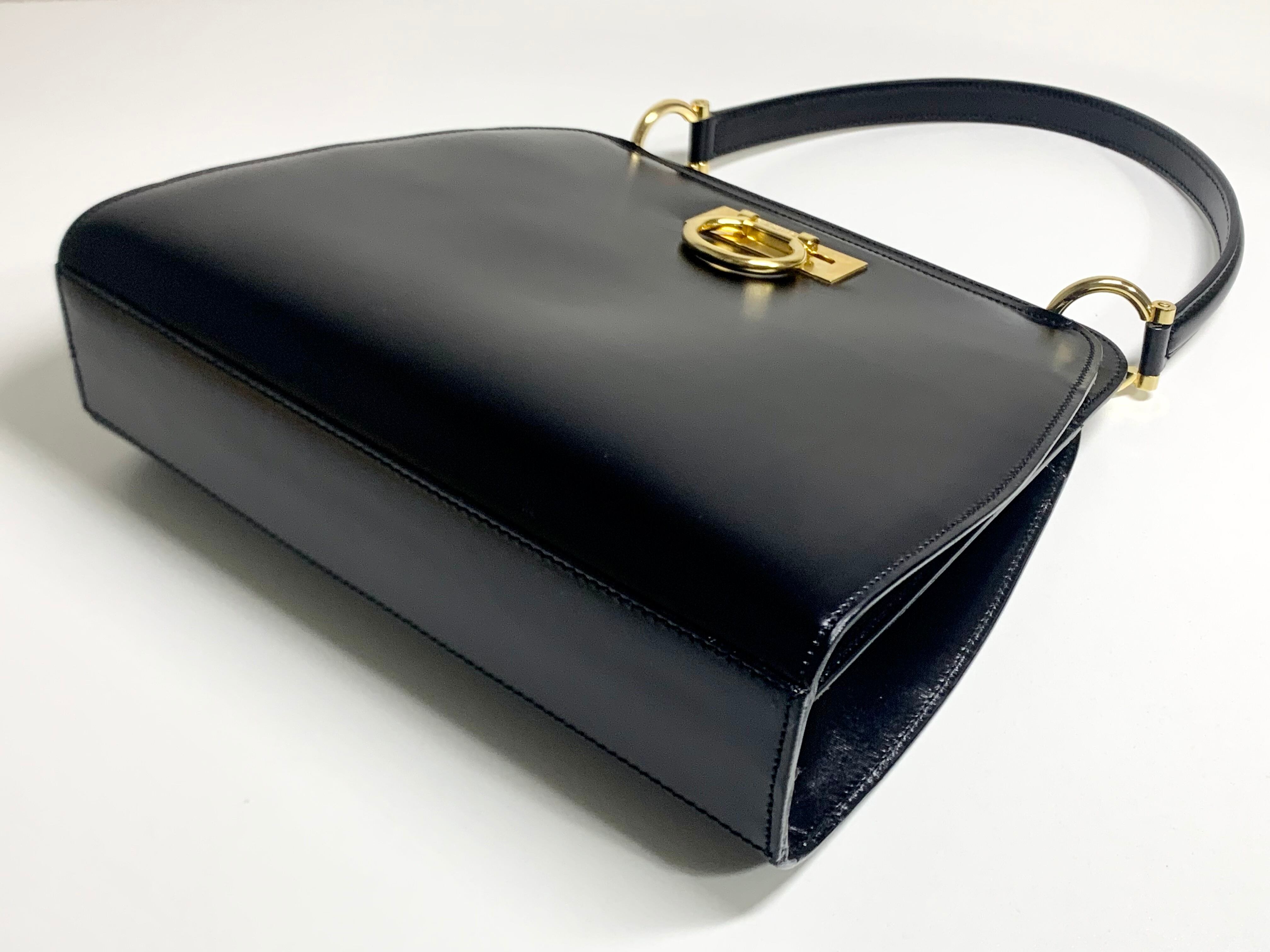 CELINE セリーヌ レザー ガンチーニ 両面フラップ ハンドバッグ 黒