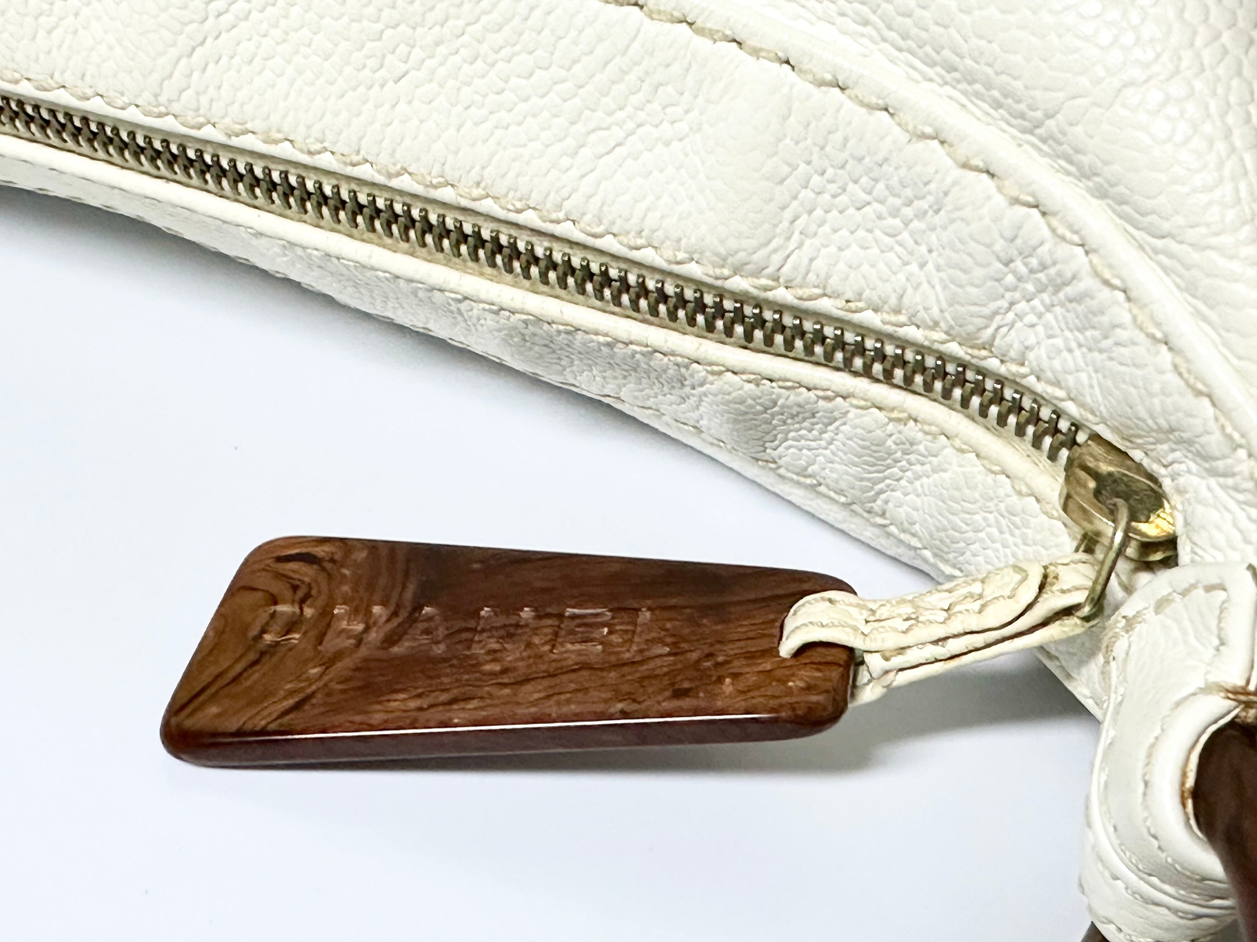 CHANEL シャネル キャビアスキン ココマーク ウッドチェーン ハンドバッグ 白